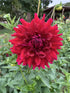 AC David is a commanding Informal Decorative dahlia celebrated for its large scale and rich, saturated color. Broad, loosely arranged petals form expansive blooms in deep dark red tones, creating a dramatic and luxurious presence in the garden. Tall and vigorous, it delivers excellent stem length and is highly valued for bold, statement-making cut flower arrangements.