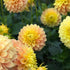The Clearview Crackerjack Dahlia bursts with vibrant yellow / peach hues, commanding attention with its bold and exuberant presence in any garden.