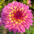 The Hollyhill Gloria Dahlia, reaching 4ft, showcases a Stellar form adorned in a striking blend of LB, lavender, and yellow hues, captivating gardens with its celestial beauty and vibrant color palette.