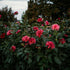 Bold pink flower with red streaks on each petal. The bright pink blooms have stunning speckles of red with a glowing yellow centre.
