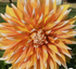 Echo Celia is a lively cactus-type dahlia with narrow petals in a vibrant blend of orange, white, and yellow. The energetic coloration and spiky form bring motion and brightness to the garden.